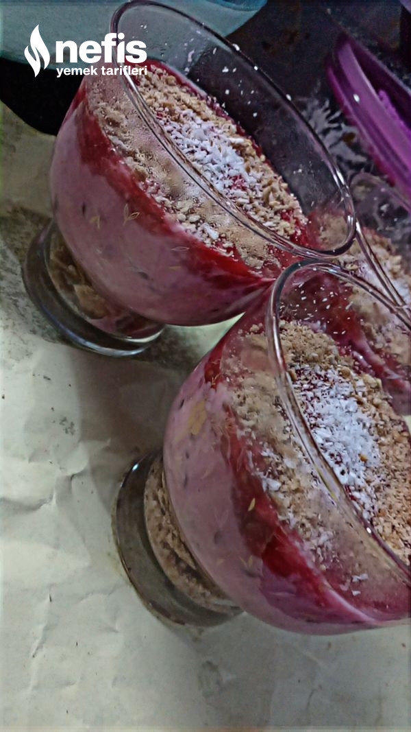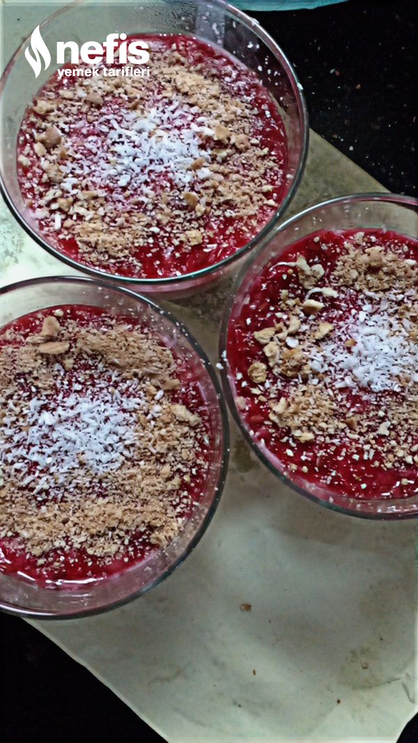 - En üste çilekli sosu dökerek buzdolabında dinlendiriyoruz.