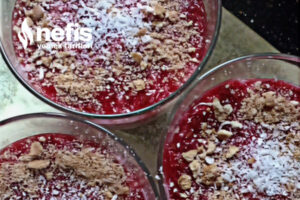 - En üste çilekli sosu dökerek buzdolabında dinlendiriyoruz.