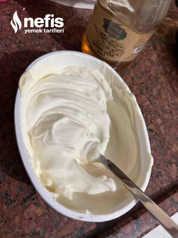 4. Bal ile labneyi karıştıralım. Krema üzere bir hal alacak.