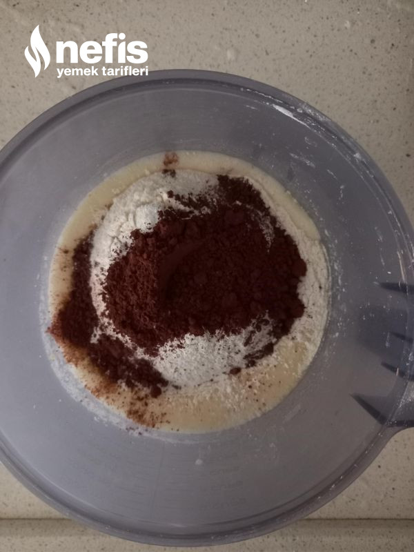1. Kek için; yumurta ve şekeri uygunca çırpalım. Sıvıyağı ve sütü ekleyip tekrar çırpalım. Unu, kakaoyu, kabartma tozunu ve vanilyayı ekleyelim son sefer çırpalım.
