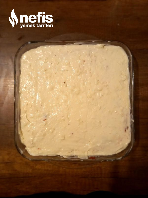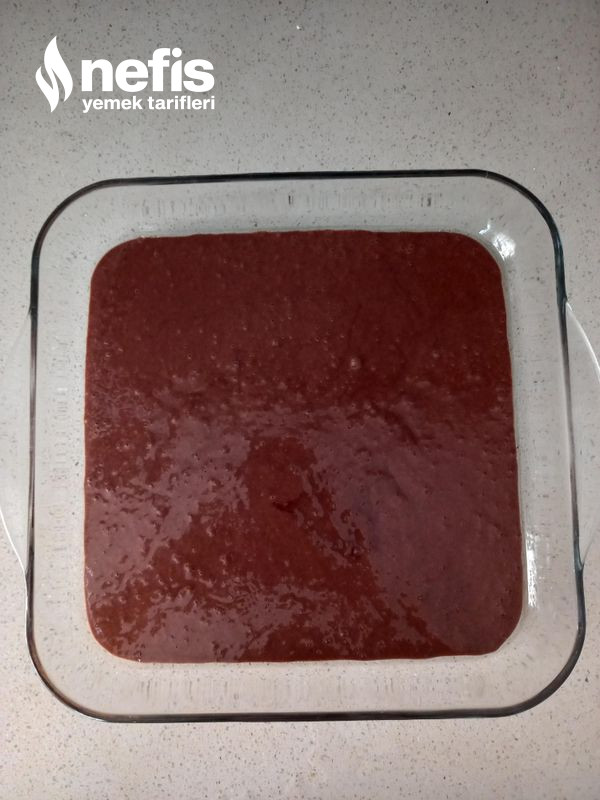 2. Büyük kare borcamı yağlayıp, karışımı dökelim ve evvelden ısıtılmış 180°c fırında pişirelim. Pişip pişmediğini kürdan batırarak anlayabilirsiniz. Piştiğinden emin olunca keki fırından çıkarıp soğumaya bırakalım.
