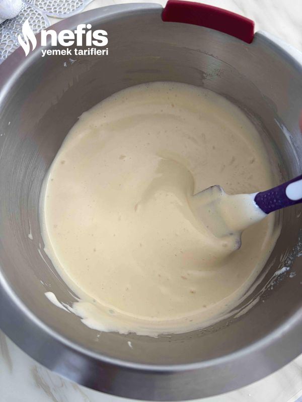 - Keki için; 3 adet yumurta ve şekeri kar üzere oluncaya kadar çırpınız sonra vanilyayı sıvı yağını ve yoğurdu ekleyip spatulayla yavaş yavaş söndürmeden karıştırınız. En son unu ve kabartma tozunu eleyerek ekleyiniz ve onuda tıpkı formda spatulayla karıştırınız.