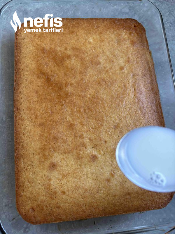 - Pişen kekin birinci sıcağı çıktıktan sonra üstüne 1 su bardağı sütü her tarafına gelecek formda dökünüz.