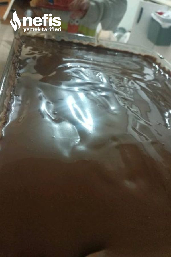 9. Soğuduktan sonra pastamızın üzerine gezdirelim ve birkaç saat o denli dinlensin şimdiden deneyeceklere afiyet olsun 😘🍫.