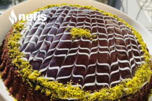 - Pişen keke krema koyulur yapılan ganaj da kremanın üzerine gezdirilir toz antep ile süslenir.