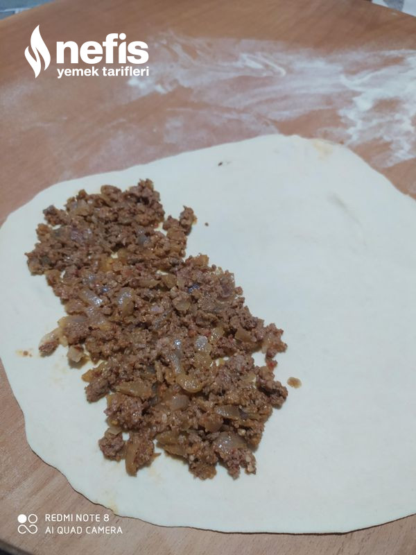 - Daha sonra hamuru küçük yufka halinde açıp içine harcımızı koyalım.