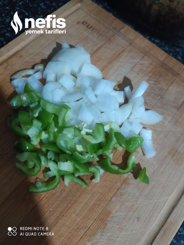 1. İlk olarak soğan ile biberleri doğrayıp kavuralım.