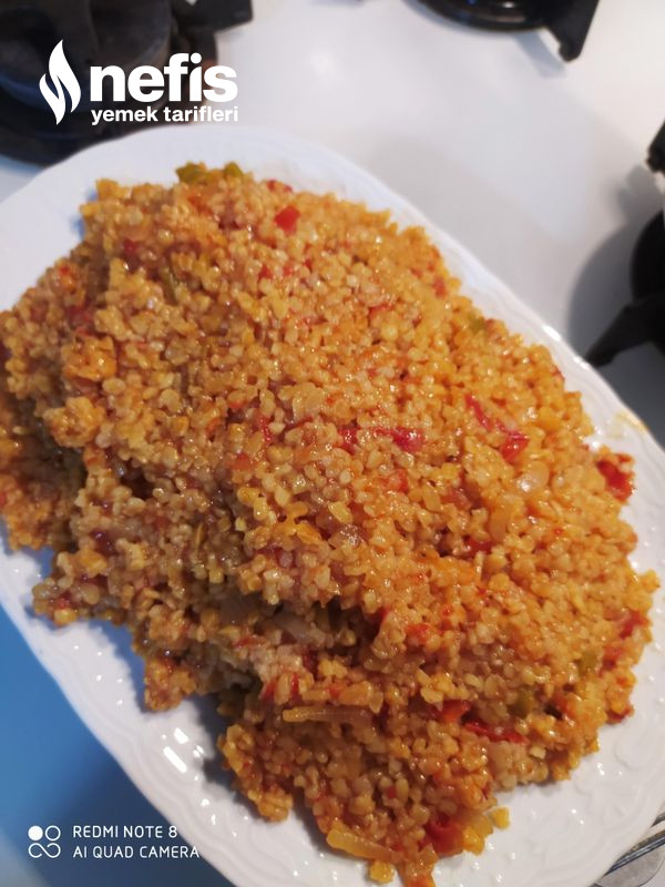 3. Domatesler piştikten sonra bulguru ekleyelim.