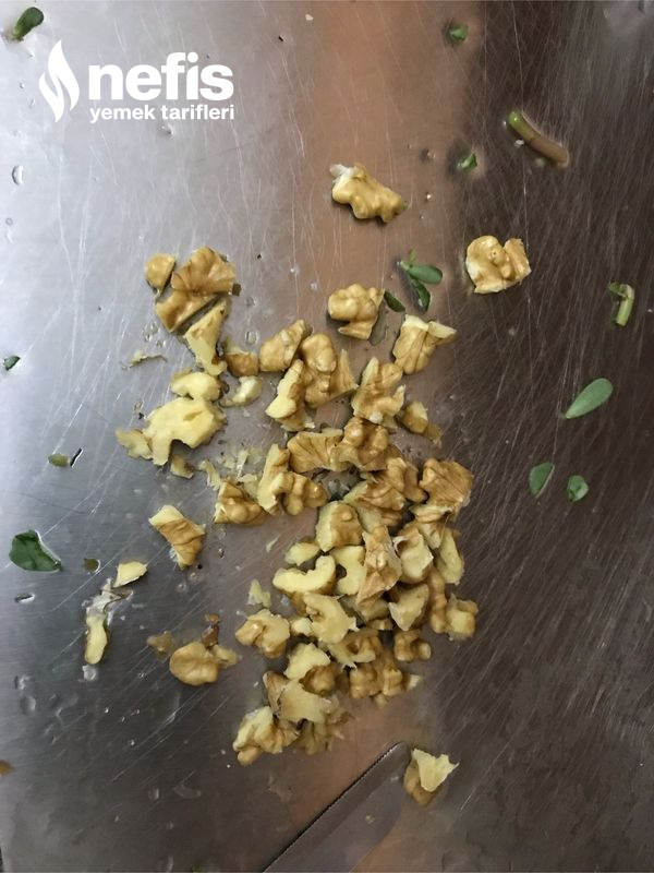 - Cevizleri de küçük küçük doğrayalım. Geniş bir salata kasesinde karıştıralım. En son zeytinyağını, sirkeyi, nar ekşisini baharatları ekleyip güzelce karıştıralım. İşte hazır afiyet şifa olsun :).