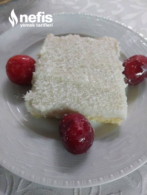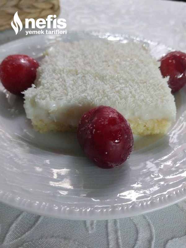 - Bir kapta keki ıslatacağımız süt ve şekeri güzelce çırpalım, soğuyan kekimizi ıslatalım, sonra üzerine kremamızı dökelim ve üzerine hindistan cevizini serpelim.