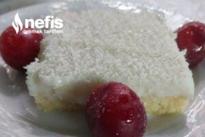 - Bir kapta keki ıslatacağımız süt ve şekeri güzelce çırpalım, soğuyan kekimizi ıslatalım, sonra üzerine kremamızı dökelim ve üzerine hindistan cevizini serpelim.