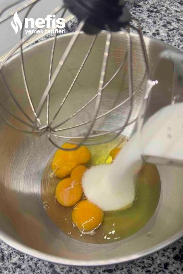 1. Önce kekimizden başlayalım, yumurtaları ve şekeri köpük köpük olana kadar 5 dakika düzgünce çırpalım .
