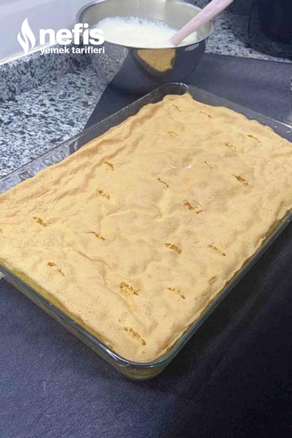 5. Keki soğumaya bırakıp muhallebimizi hazırlayalım.