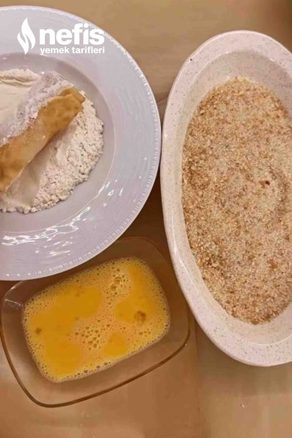 5. Sardığımız kreplerin her yerini evvel una sonra yumurtaya son olarak galeta ununa bulayalım (paneleme sürecini böreklerin her yerine gelecek biçimde dikkatli yapalım böylece börekler hiç yağ çekmiyor)