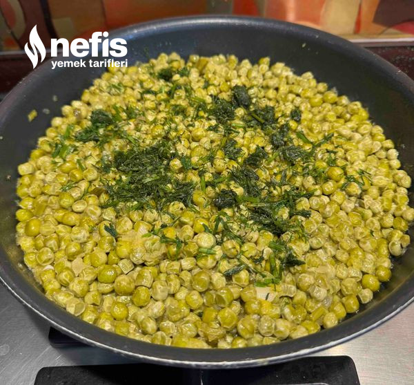 3. Bezelyeler pişince ince kıyılmış 2 tutam dereotu üzerine serpelim, şöyle bir karıştırıp yemeğin altını kapatalım. Afiyet olsun 🌺