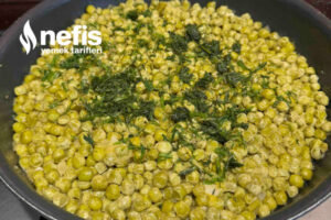 3. Bezelyeler pişince ince kıyılmış 2 tutam dereotu üzerine serpelim, şöyle bir karıştırıp yemeğin altını kapatalım. Afiyet olsun 🌺