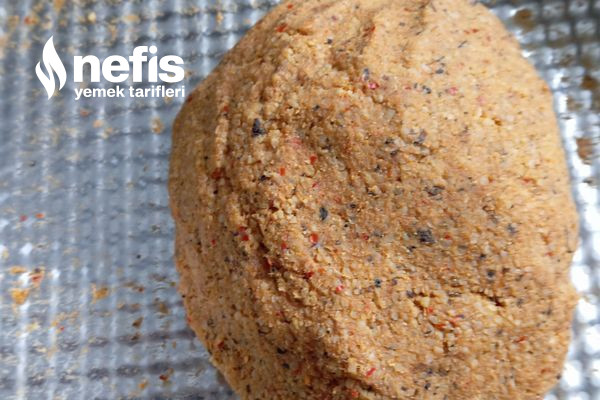 - Demlenen bulgura kıymayı alıp üzerine irmik, yumurta, reyhan ve pul biberi ekleyip elimizi ıslatarak yoğuralım. (ancak hamuru çok ıslatmayalım zira köftelerimiz biraz sert olmalı ki pişerken dağılmasın. ).