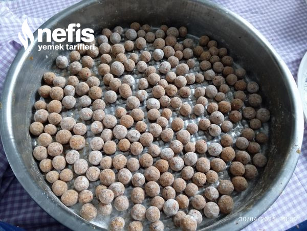 - Yeterince yoğurup kıvam aldığını düşündüğünüz hamurumuzu misket köfte büyüklüğünde yuvarlamaya başlayabiliriz.