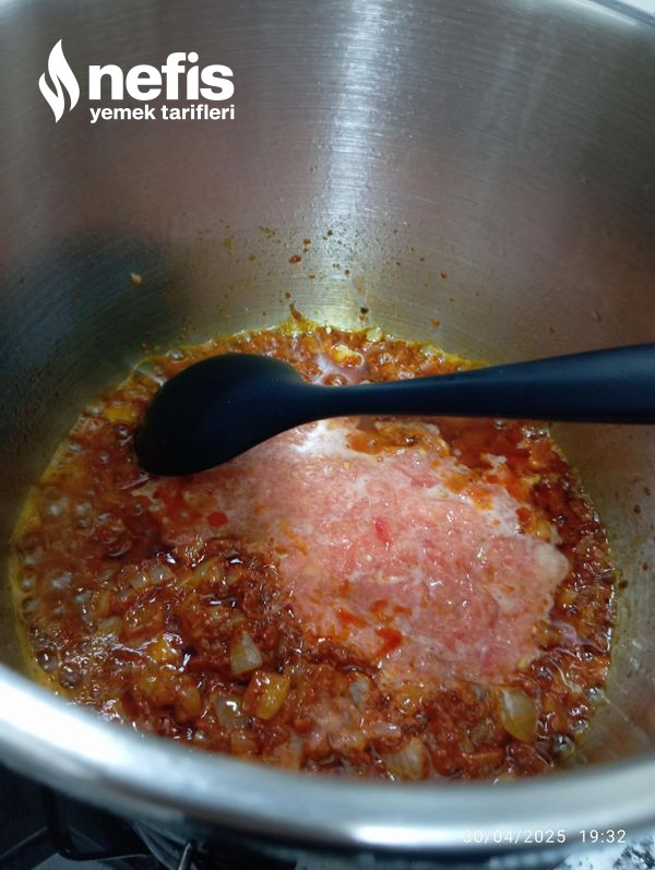 - Robottan geçirilmiş domatesi de ekleyip karıştıralım.