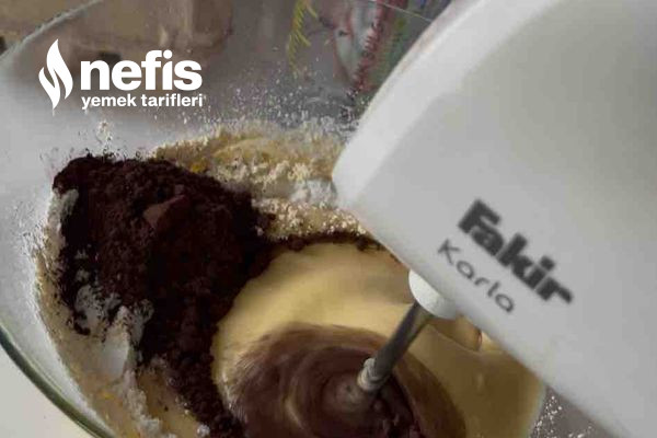 - Un karışımı,kakao, vanilya ve kabartma tozu ekleyelim ve düzgünce çırpalım.
