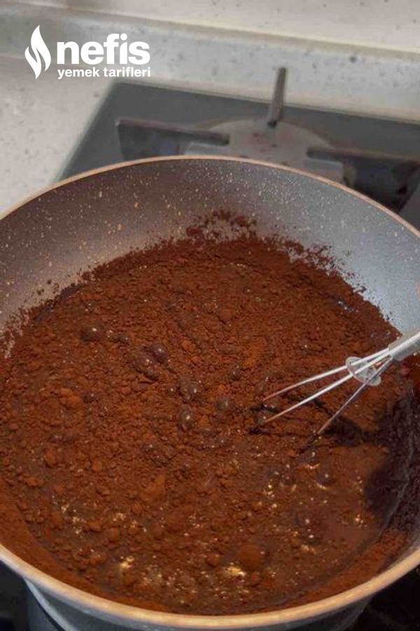 - Kahveli şurup için, süt, kahve ve kakaoyu karıştırıp kaynamaya bırakalım 1 dakika kadar kaynayan karışımı kenarda soğumaya bırakalım.