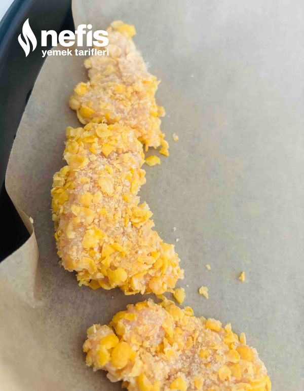 - Ayrı bir kapta mısır gevreği, galeta unu, baharatları karıştırın.
