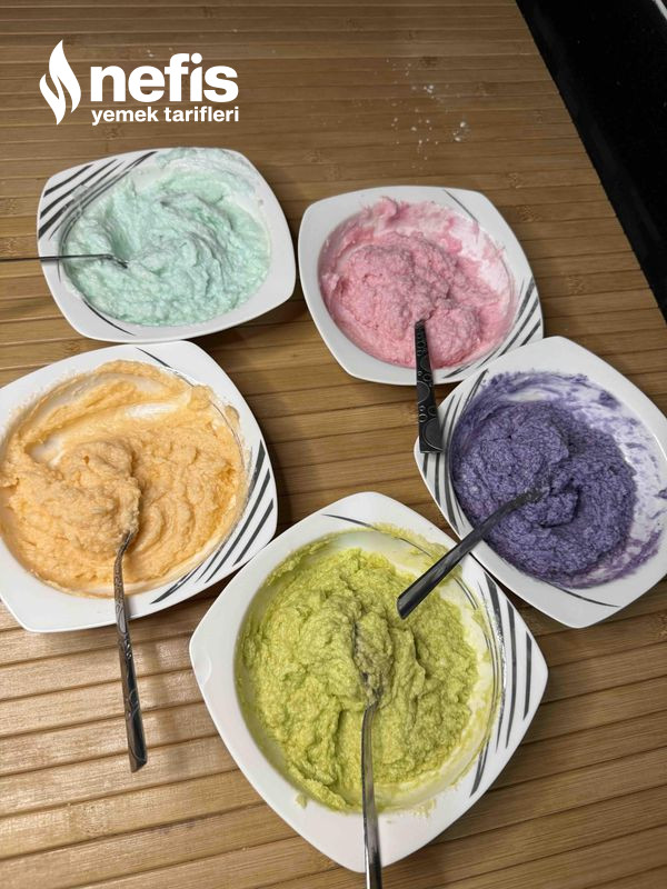 - Renklendirdiğimiz kremayı buzdolabı poşetlerine alın. Sıkma torbasının içine buzdolabı poşeti ile koyun daha pratik oluyor.