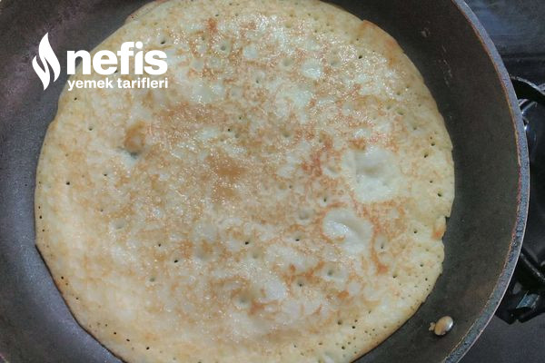 - Kıvamını su ile verdikten sonra kepçe ile yağlı teflon tavaya döküp orta ateşte pişiriyoruz.