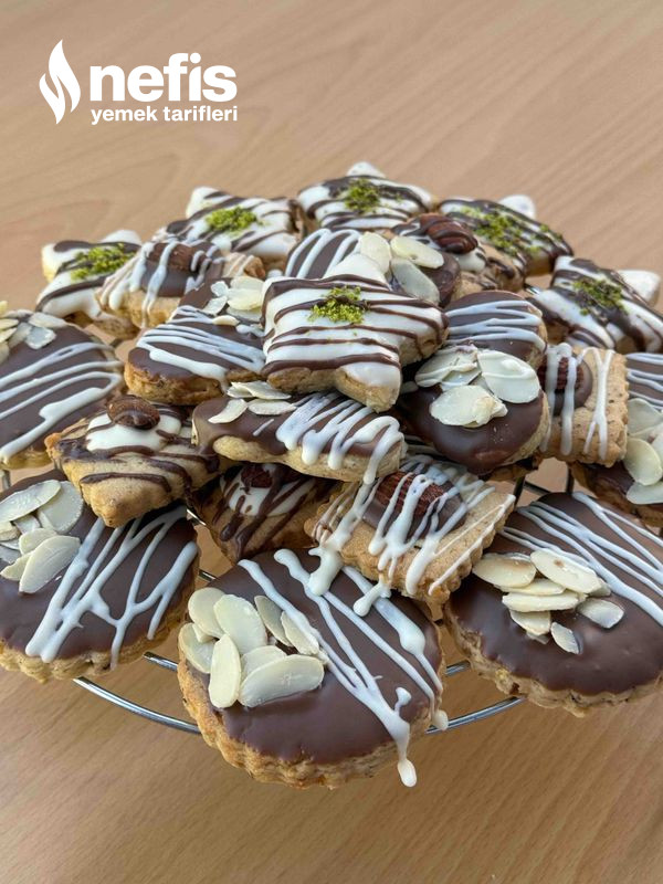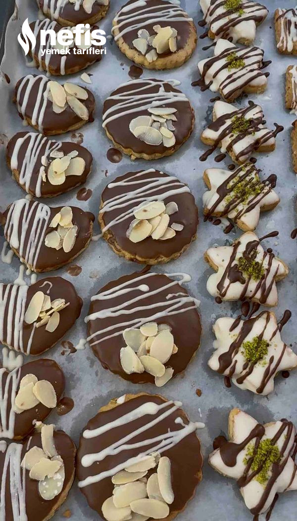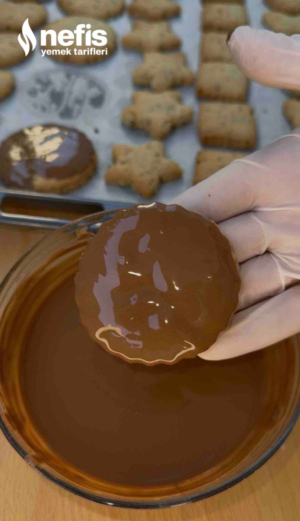 9. Kurabiyeler soğuduktan sonra eritilmiş sütlü yahut beyaz çikolataya batırın. Afiyet olsun ❤️.