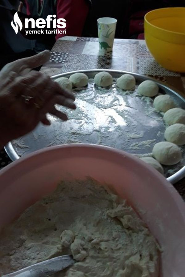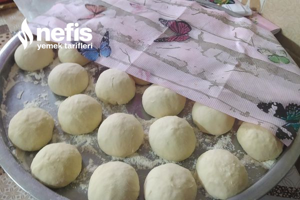 - Yaptığım hamuru sineye un serperek bezelere ayırıp 30 dakika dinlenmeye bırakıyoruz.