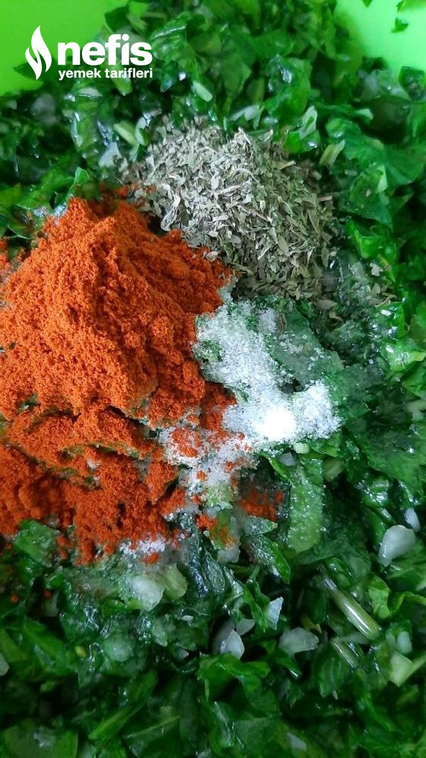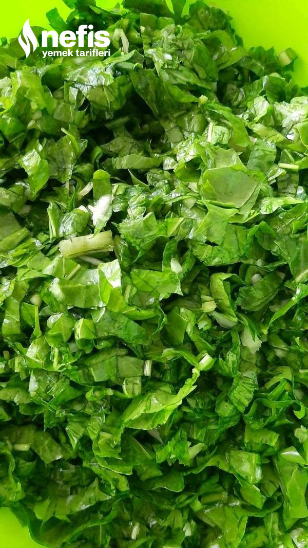 - Pazı yapraklarını temizleyip yıkayalım ince bir biçimde kıyalım. Soğanlarıda ince doğrayarak pazı yapraklarıyla karıştırıp baharatları ve sıvı yağı ekleyip karıştıralım.