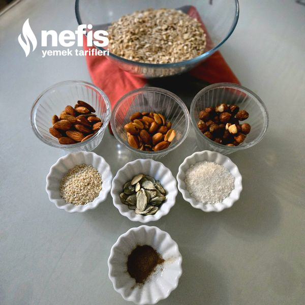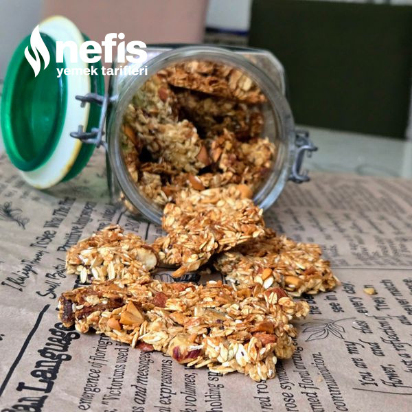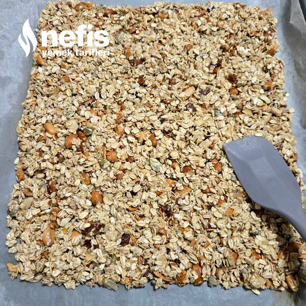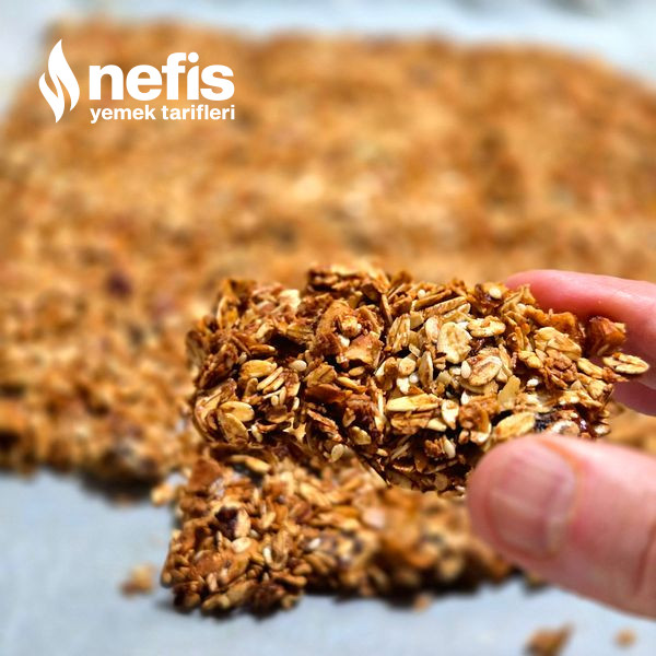 Not:Ben dilimleyerek pişirdim materyalleri bir birine tutan yalnızca elma şurubu olduğu için çabuk kırılıyor ama yemesi çok keyifli ağızda kıyır kıyır dağılıyor şayet bar formunda yapmak isterseniz sıkı tutması için muz vs katabilirsiniz.