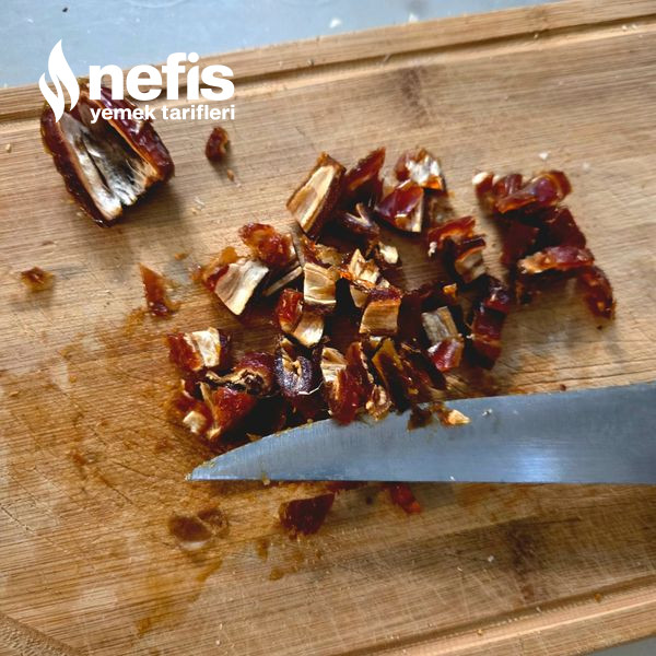 - Çerezleri bıçak yardımıyla iri Formda kıyın. Hurmaların çekirdeklerini çıkarıp, küp küp doğrayın.