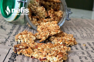 Not:Ben dilimleyerek pişirdim materyalleri bir birine tutan yalnızca elma şurubu olduğu için çabuk kırılıyor ama yemesi çok keyifli ağızda kıyır kıyır dağılıyor şayet bar formunda yapmak isterseniz sıkı tutması için muz vs katabilirsiniz.
