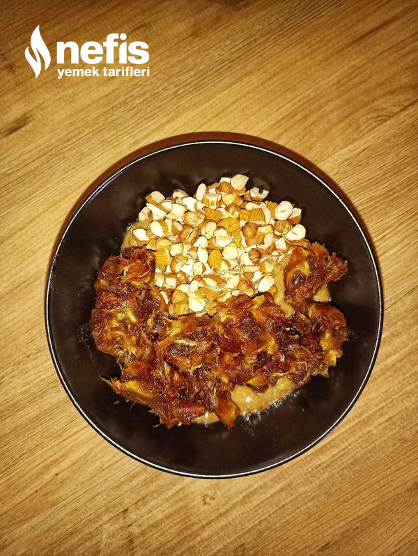 2. Yaptığımız bu karışımın içerisine irili ufaklı doğradığımız kuru yemişleri ve hurmayı ekleyelim.