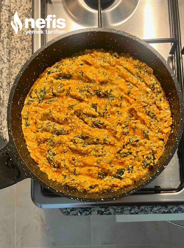 3. Ardından ıspanakları ekleyin ve yavaşça soteleyin. Lor peynirini ek edip karıştırın.