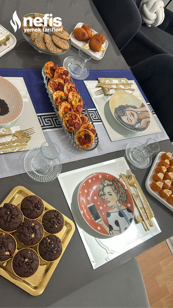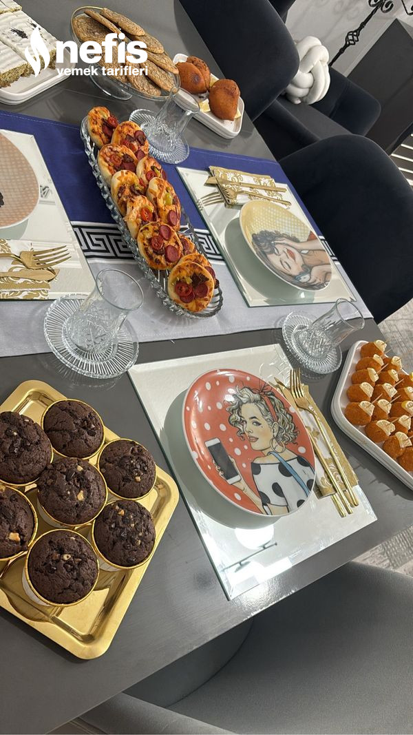 Gün Masası Haşhaşlı revani Çikolata parçacıklı kurabiye İçli köfte Mini pizza Çikolatalı cupcake Mercimek köftesi Misafir için gün menüsü. İlginizi Çekebilir:Dev Bisküvi Pastası