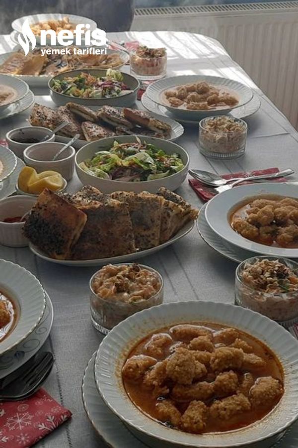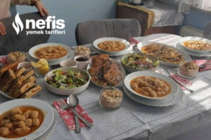 Gün Menüsü Beş Çayı Yöresel Etli Köfte Soğanlı Gömbe Ispanaklı Börek Patatesli börek Havuç tarator Mevsim salatası Tatlı Kadayıf dolma Taş kadayıf Patlamış mısır Hurma topları Çerez çeşitleri Beş çayı menüsü İlginizi Çekebilir:Dev Bisküvi Pastası