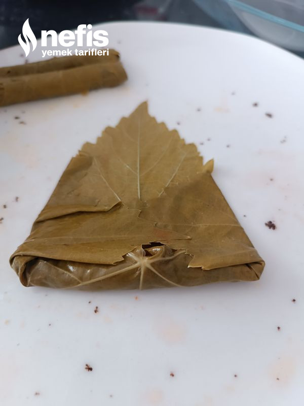 4. Ben kavanozda yaprak kullandığım için yaprakları haşlamadım. Direkt sardım. Görseldeki üzere sarabilirsiniz. Benim sarmalarım üzere hepsi tıpkı uzunluk olsun istiyorsanız şayet yaprağınız büyükte olsa küçükte olsa daima birebir ölçüde iç kullanırsanız uzunlukları daima birebir olur. Bir ölçünüz olsun ve daima o formda sarın. Sararken ne kadar çok sıkarsanız yaprağınız pişerken daha çabuk patlar ve içleri pişmez tıkır kalır şişemediği için. Pirinçleri pişerken şişmesine çok az müsade edecek kadar sarmanız gerekiyor.