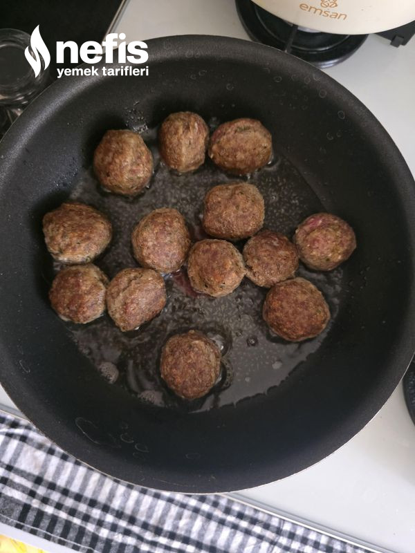 5. Daha sonra buzluktan çıkarttım köftelerimi tavamda pişiriyorum zira fırına vermeden pişirmezsem şayet değişik bir tadı ve çiğ üzere bir dokusu oluyor.