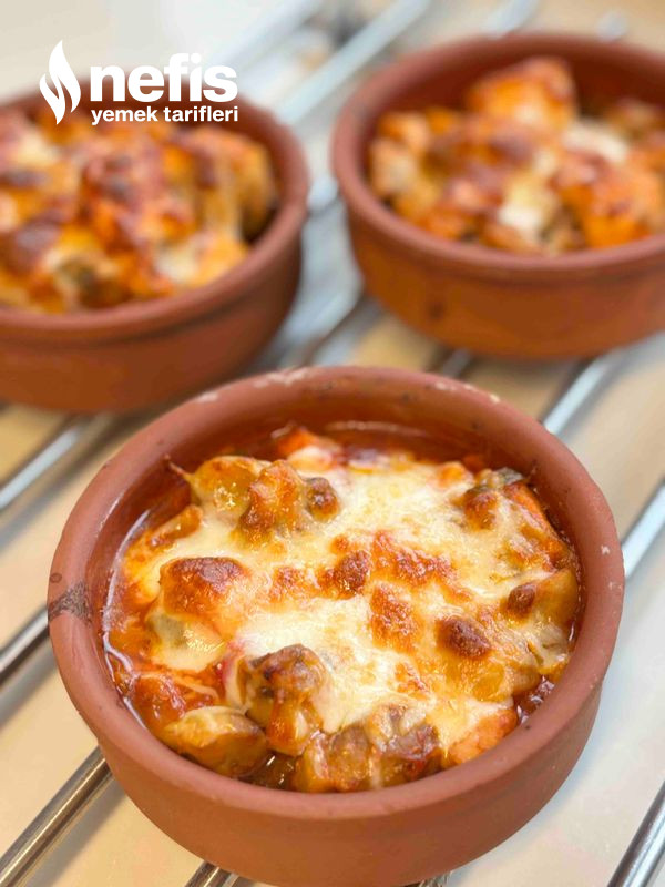 - Güveçlerin üzerine kaşar peynir rendesi ekleyin, güveçleri fırın tepsisine yerleştirin.