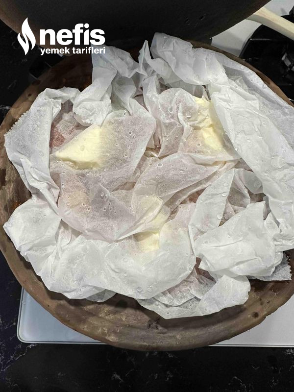 - Üzerine tuzunu ve birkaç modül tereyağımızı koyup üzerine ıslattığımız yağlı kağıdı kapatıyoruz.