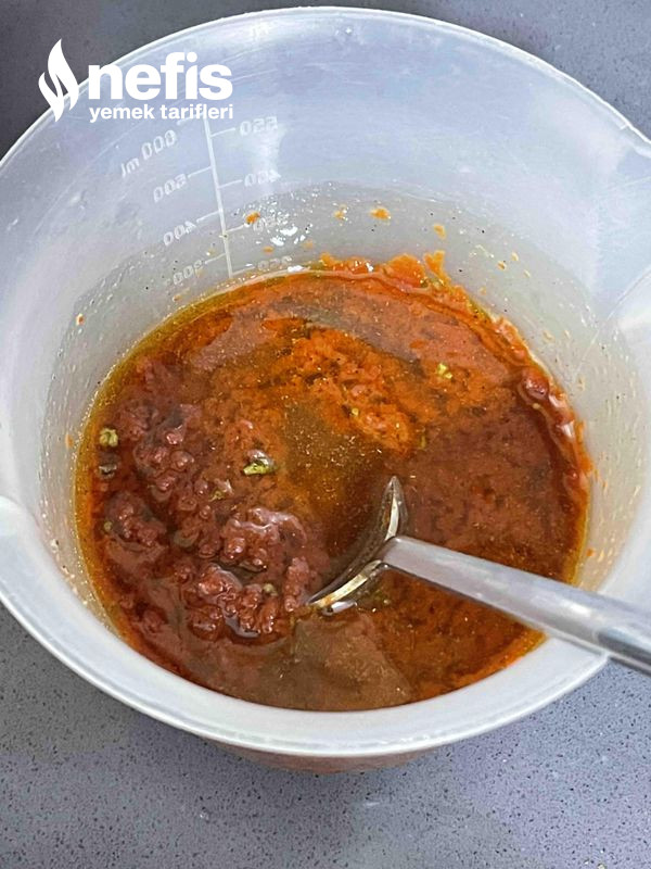 3. Sos için su hariç bütün materyalleri bir kap içerisine alıp karıştıralım.