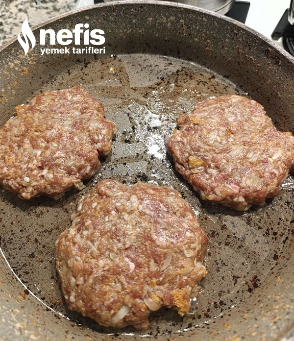 2. Önceden ısıtılan tavada çok az bir yağ ile altı kısık olarak pişirilir. köfte çıkmadan evvel üzerine birer dilim chedar peynir konularak yumuşaması sağlanır.