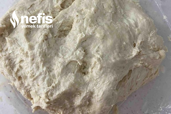 2. Un dışında öbür gereçlerimizi ekleyip karıştırıyoruz son olarak yavaş yavaş un ekleyerek hamurumuzu yoğuruyoruz elimize yapışmayacak kulak göğsü kıvamında hamurumuz oluyor.