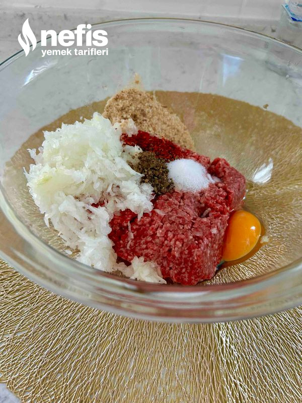 - Kıyma ve öteki gereçleri derin bir kaba alalım 5 dakika boyunca yoğuralım. 1 saat buzdolabında dinlendirelim.
