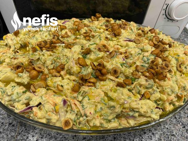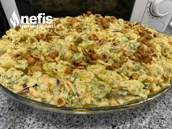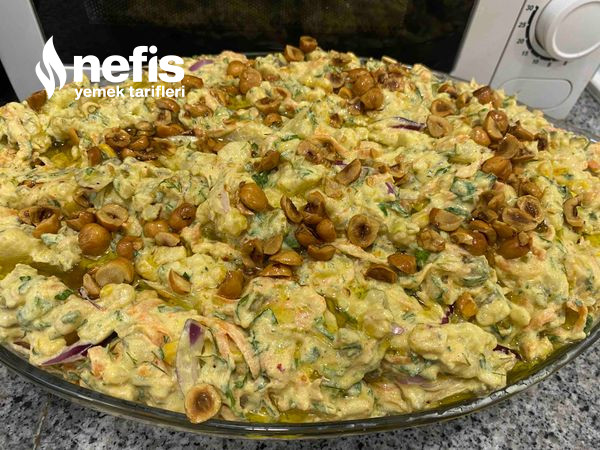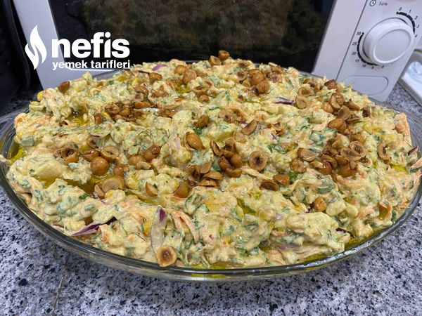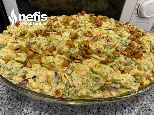 4. Salatamızı servis tabağına alıp üzerine fındıklar gezdirelim afiyet olsun.