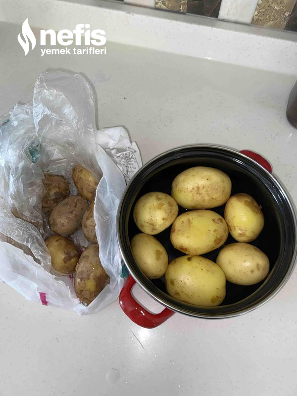 1. İlk olarak patateslerimi güzelce yıkayıp haşlamaya bırakalım.