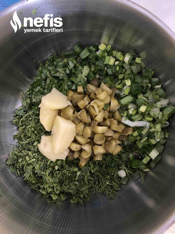 6. Patateslerimizi haşlayıp soğuttuktan sonra (çünkü sıcak patates erir ufalanır ) tuz ve pul biber ile öbür kestiğimiz gereçlerimizin içine ekleyelim akabinde sosumuzuda ekleyelim.