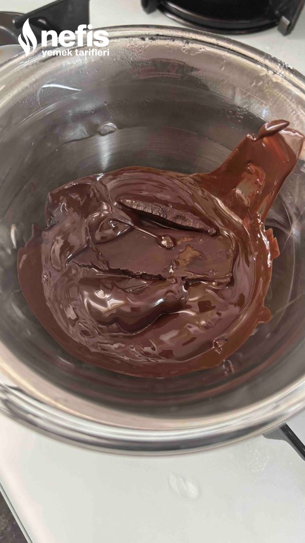 1. Öncelikle kalıp çikolatamızı benmari adabı ile eritiyoruz.